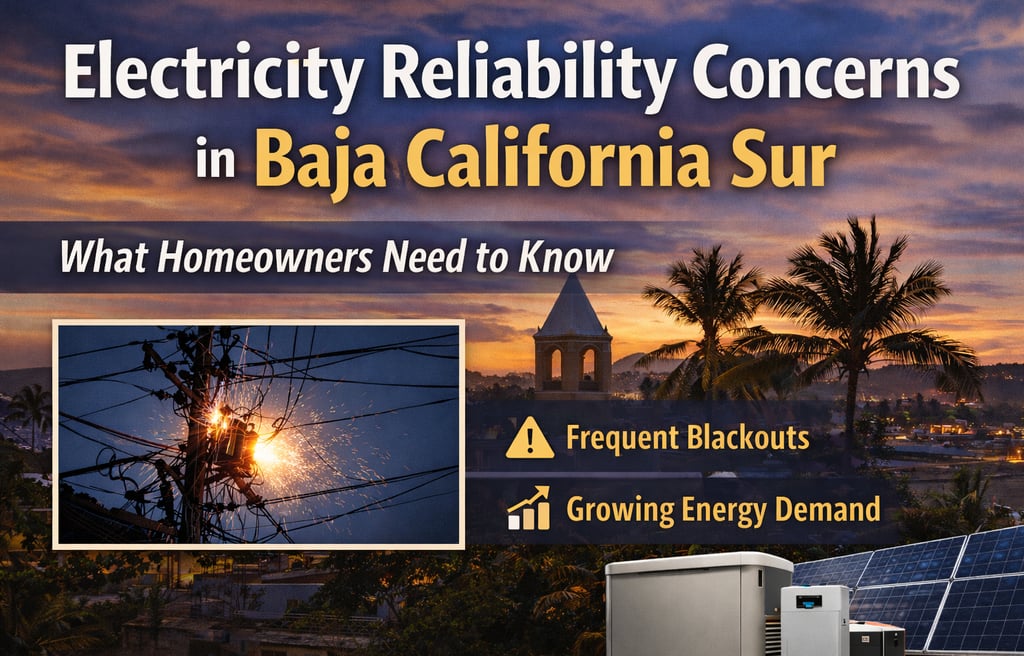 Power outages, grid strain, and rising energy demand are increasing electricity reliability concerns across Baja California Sur. Learn what homeowners need to know.