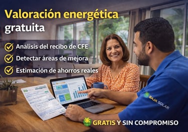 En Baja Solar ofrecemos una valoración energética gratuita para analizar el consumo eléctrico de tu propiedad, detectar áreas de mejora y estimar los ahorros reales que puedes obtener con un sistema solar bien diseñado.